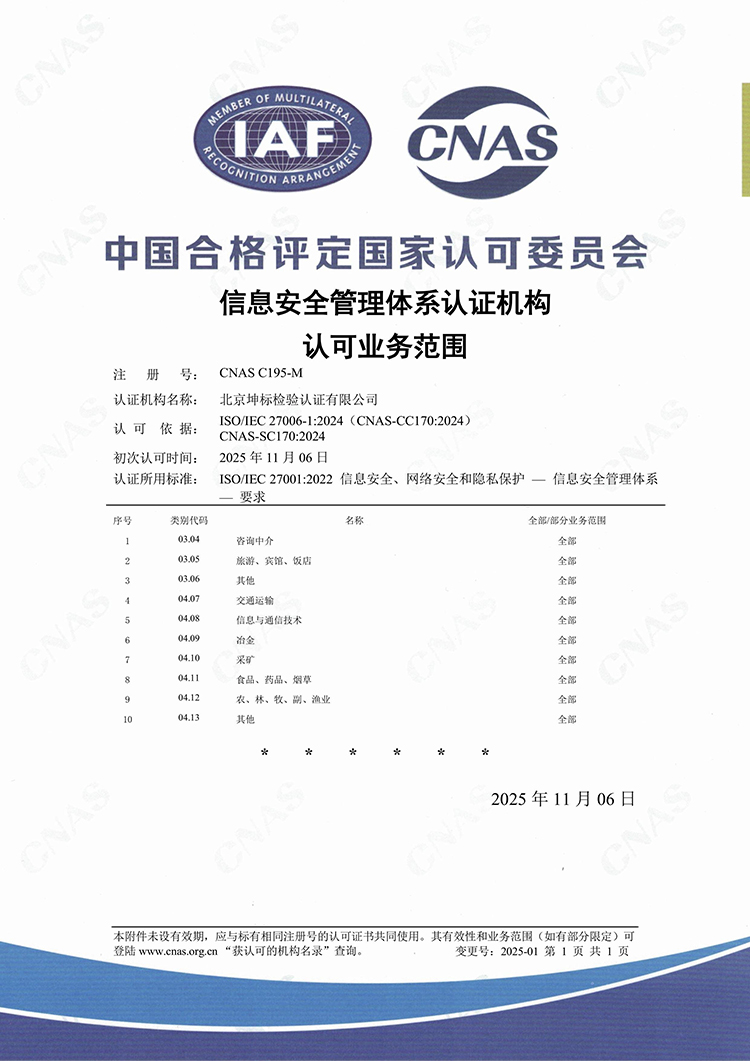 | CNAS-C195-M信息技术服务管理体系 | CNAS-C195-M信息安全管理体系 |